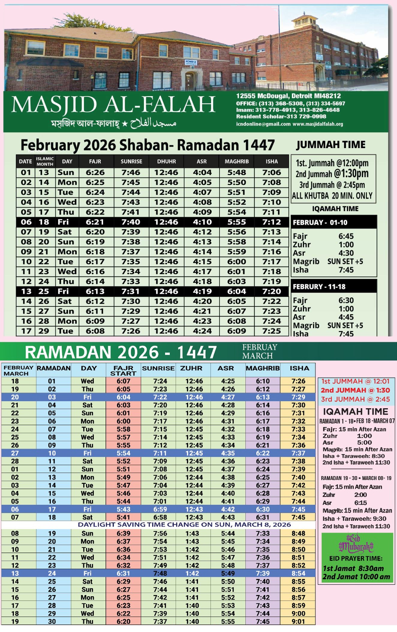 Masjid Al Falah is situated near Hamtramck, serving as one of the largest mosques in Detroit for our local community.